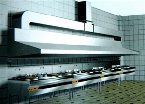 廚房排煙系統(tǒng)屬于強排煙,為了能夠保證排煙的順暢,需要排煙風(fēng)柜將排煙罩處保持在負壓的情況下(壓差在一個大氣壓以上),才能將油煙順暢的排出室外。根據(jù)廚房設(shè)備的布局情況,一樓排煙系統(tǒng)設(shè)有三組排煙,二樓排煙系統(tǒng)設(shè)有二組排煙,每組排煙都具有獨立的排煙風(fēng)機、凈化系統(tǒng)及排煙管道。